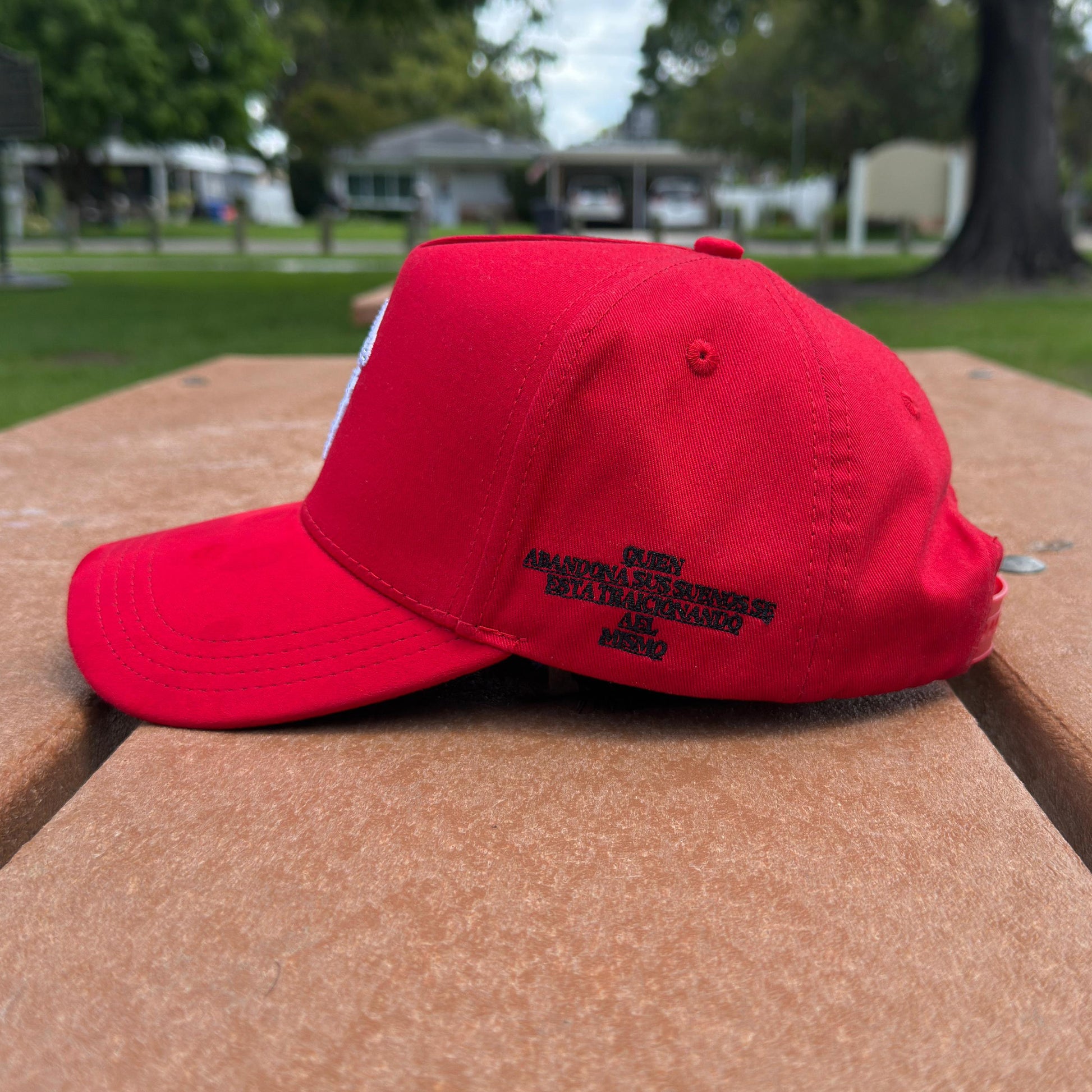 Intensidad y carácter en un solo accesorio. Esta gorra roja llamativa presenta un bordado lateral con una declaración audaz. Perfecta para quienes viven con pasión y no temen destacar.